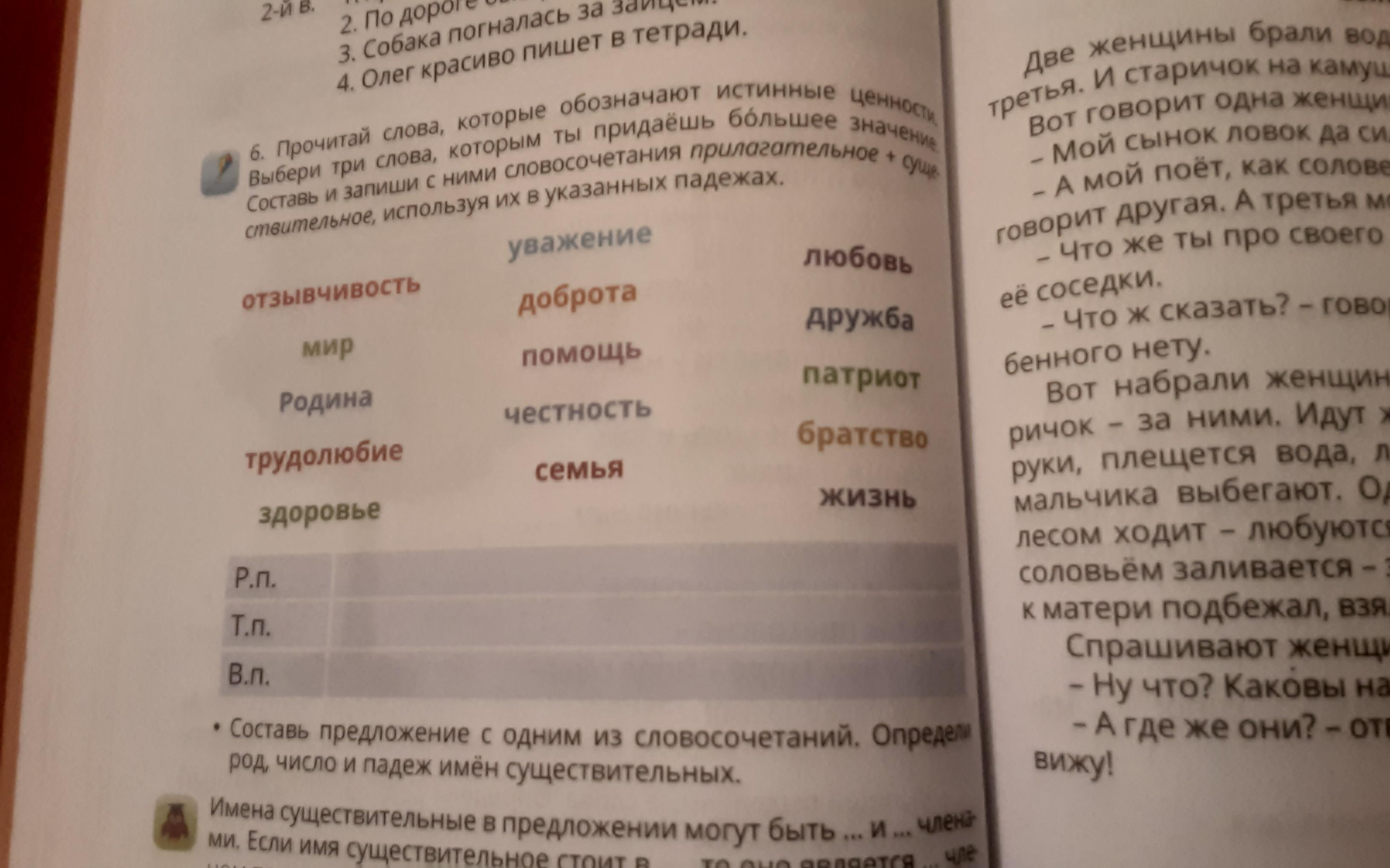 #6 Составь предложение с одним из словосочетаний. Определи род, число и падеж имён существительных.