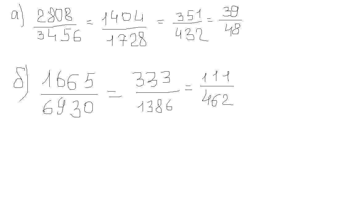 используя признаки делимости, докажите, что дробь можно сократить и выполните сокрощение а) 2808_3456, б)1665_6930