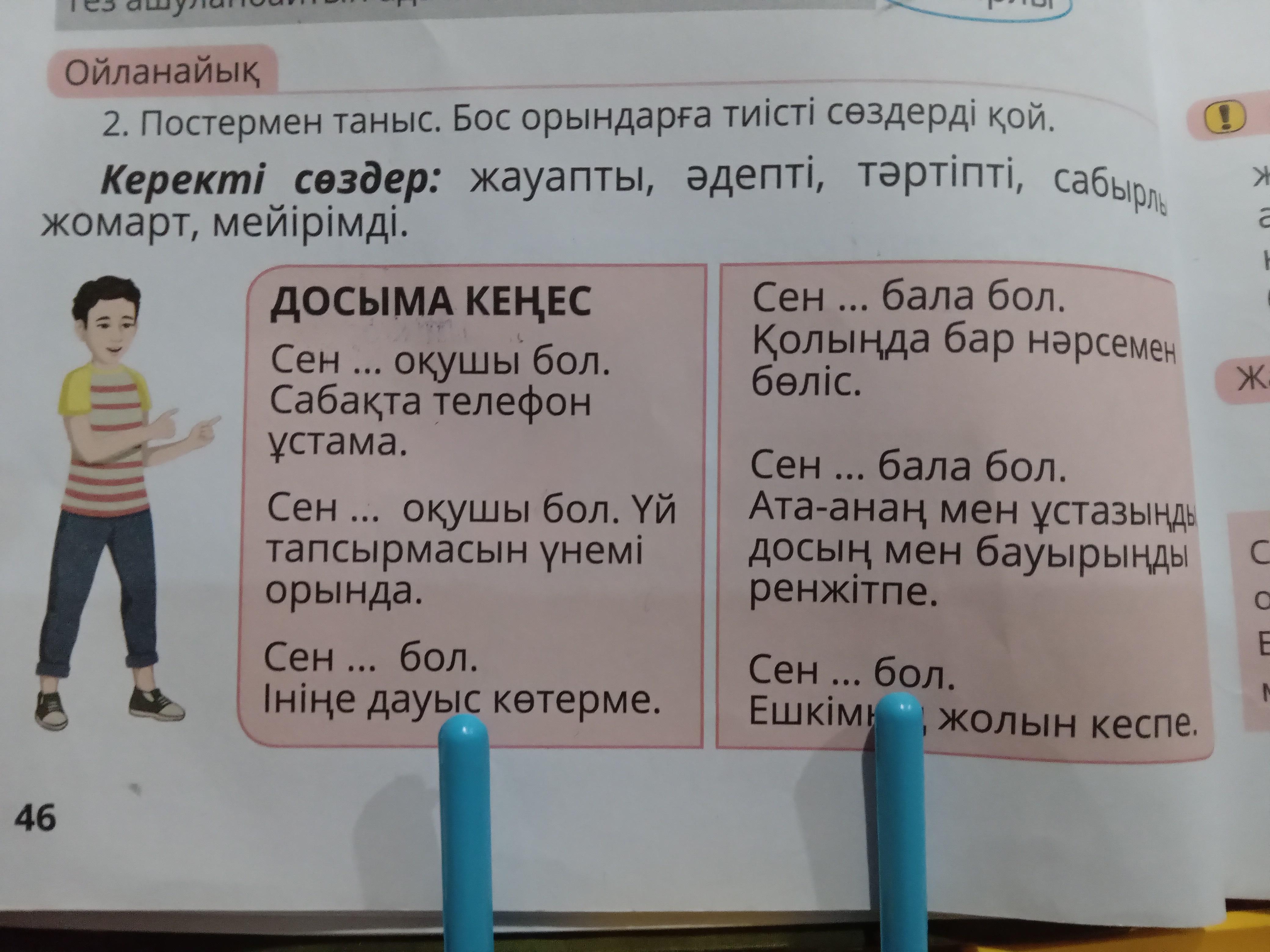 Сен. ...... окушы бол.Сабакта телефон устама .2.Сен ...... окушы бол.Уй тасырмасын унемы орында.3.сен.... бол.Ыныне дауыс которые.4.Сен ... бала бол колында бар нарсемен болыс.5.Сен