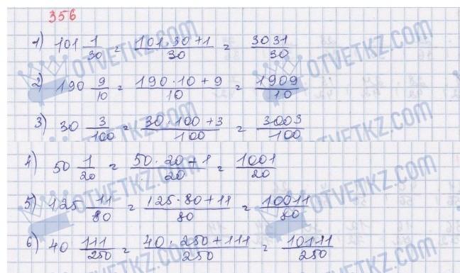 356. Аралас санға тең бұрыс жай бөлшектің алымын табыңдар! 1 9 3 1) 101 : 2) 190 3) 30 30 10 100 І 11 111 4) 50 5) 125 6) 40 20 80 250