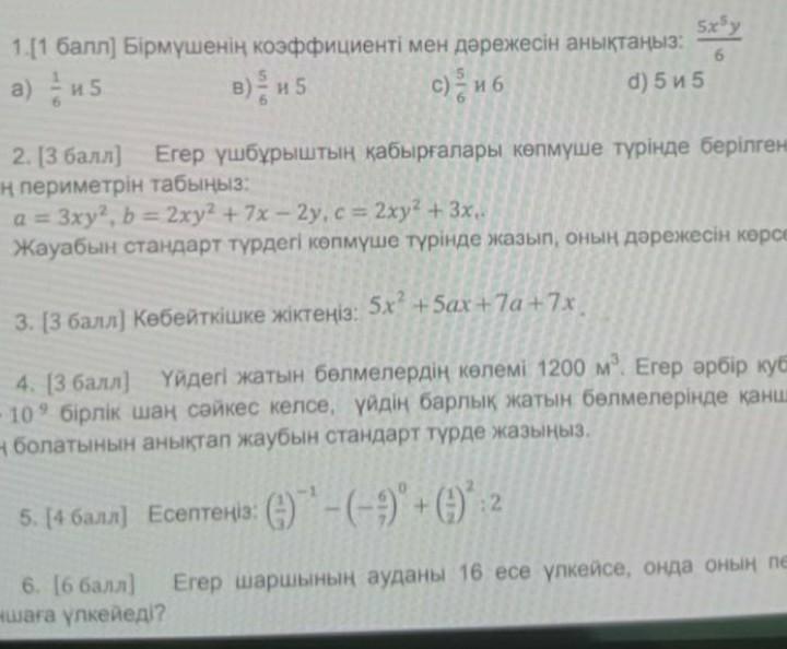 4. [3 балл] Үйдегі жатын белмелердің көлемі 1200 м³. Егер әрбiр кус 10 бiрлiк шаң сәйкес келсе, үйдің барлық жатын бөлмелерінде канш болатынын анықтап жаубын стандарт турде жазыныз даю 50