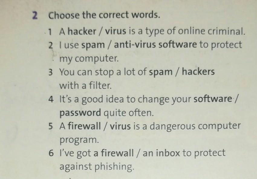 1 hacker 2 anti virus software 3 filter 4 password 5 virus 6 firewall