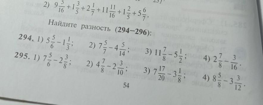 295. 1) 7 5/6-2 3/8; 2) 4 7/8-2 3/10; 3) 7 17/20-3 1/8; 4) 8 5/8-3 3/12.