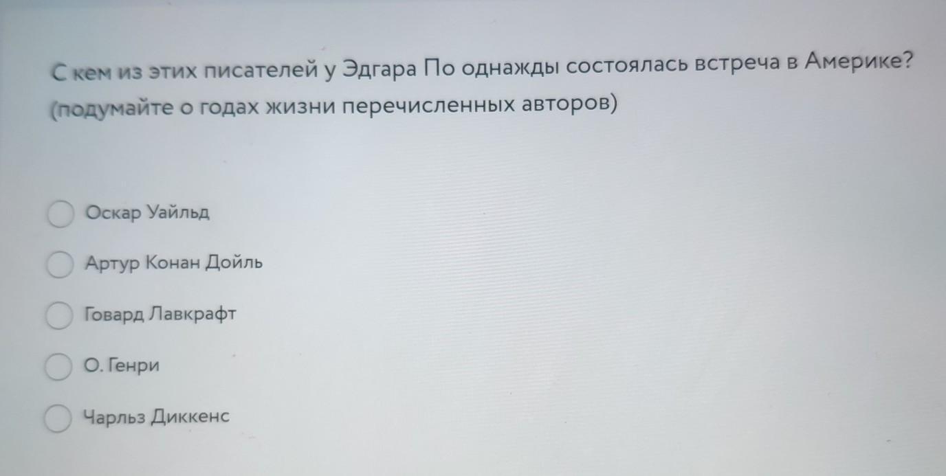 С кем из этих писателей у Эдгара По однажды состоялась встреча в Америке? (подумайте о годах жизни перечисленных авторов)