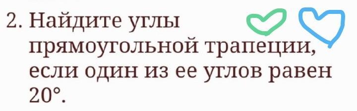 т.к. трапеция прямоугольная, один из углов равен 90,другой соотвественно тоже, второй 20 ( по условию), найдём последний угол: 360 - 200 = 160