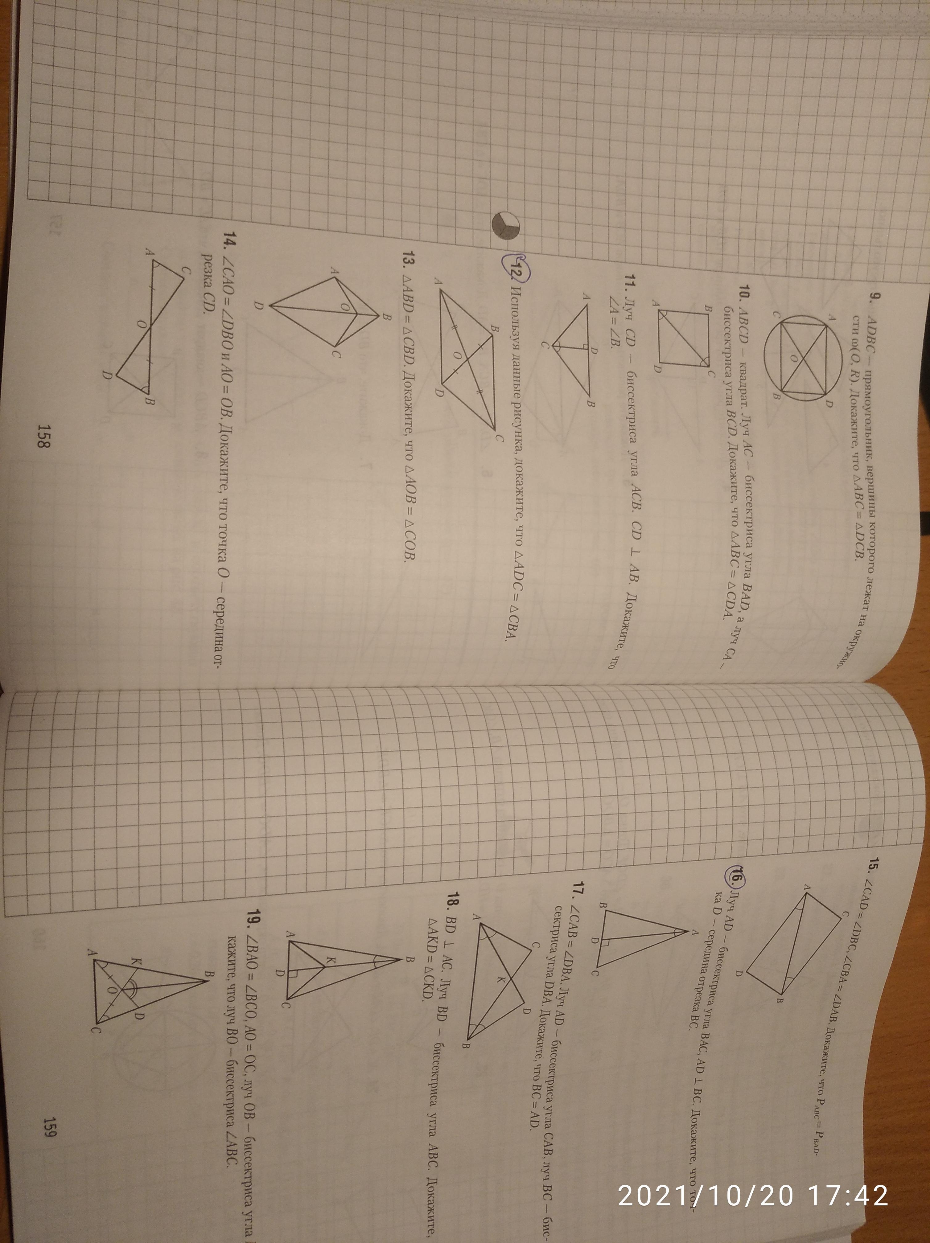 12. ADC=ABC тк АС общая , BD общая и <AOB=<DOC тк они вертикальные | треугол равны по двум сторонам и < между ними