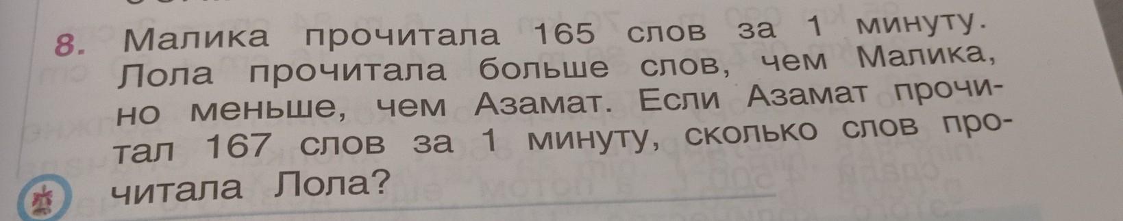 Пусть Малика будет М, Лола -- Л, а Азамат -- А.