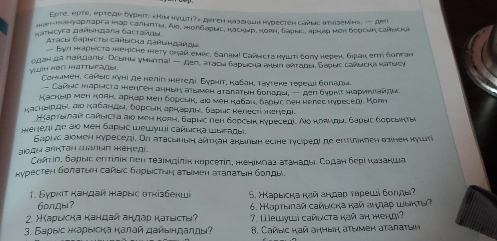 АЙТЫЛЫМ 5 -тапсырма. Сұраққа жауап бер. Сөйлем құрал айт. Аңдар не істейді? Жолбарыс Барыс Қасқыр Аю Түлкі