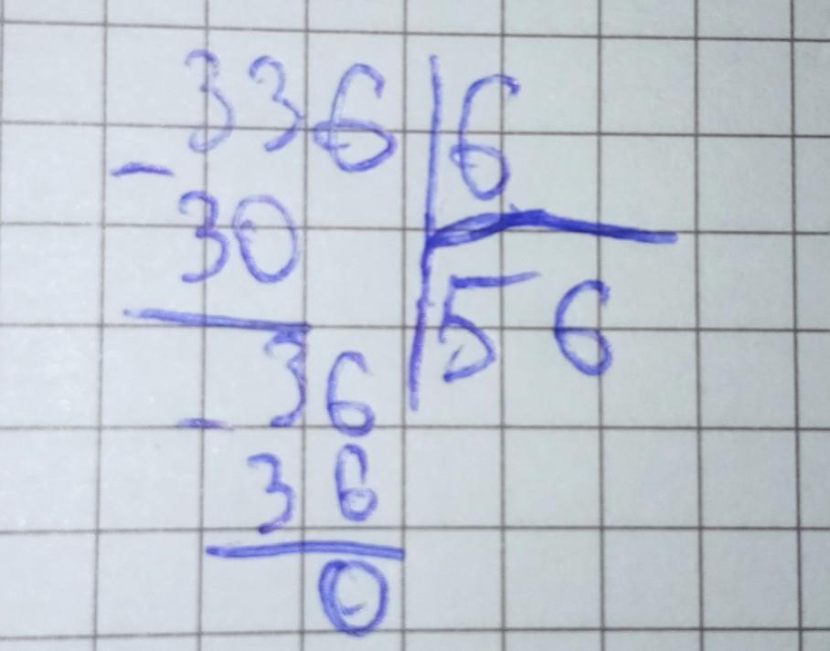 сносим три вниз там есть шестерка берём по шесть получается 56