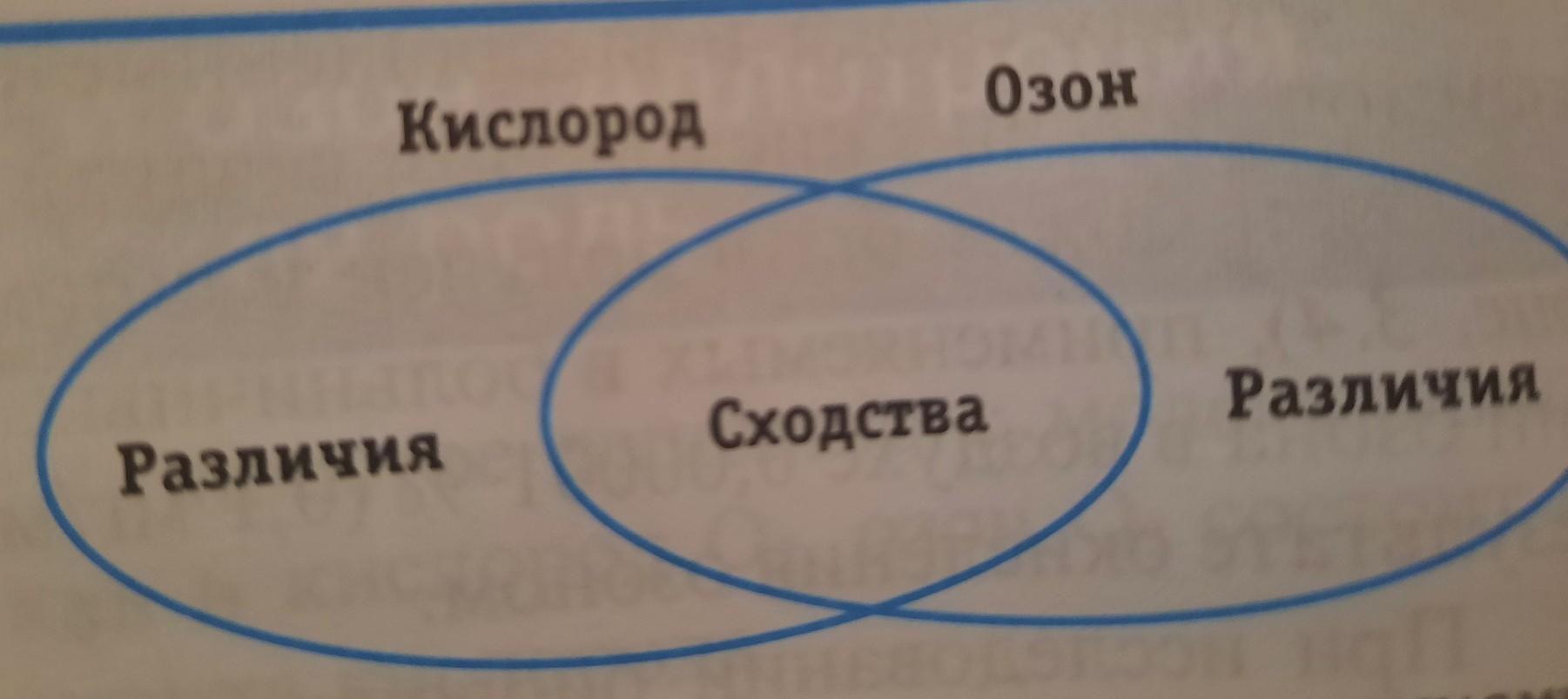 1. С помощью диаграммы Венна продемонстрируйте сходства и различия кислорода и озона.