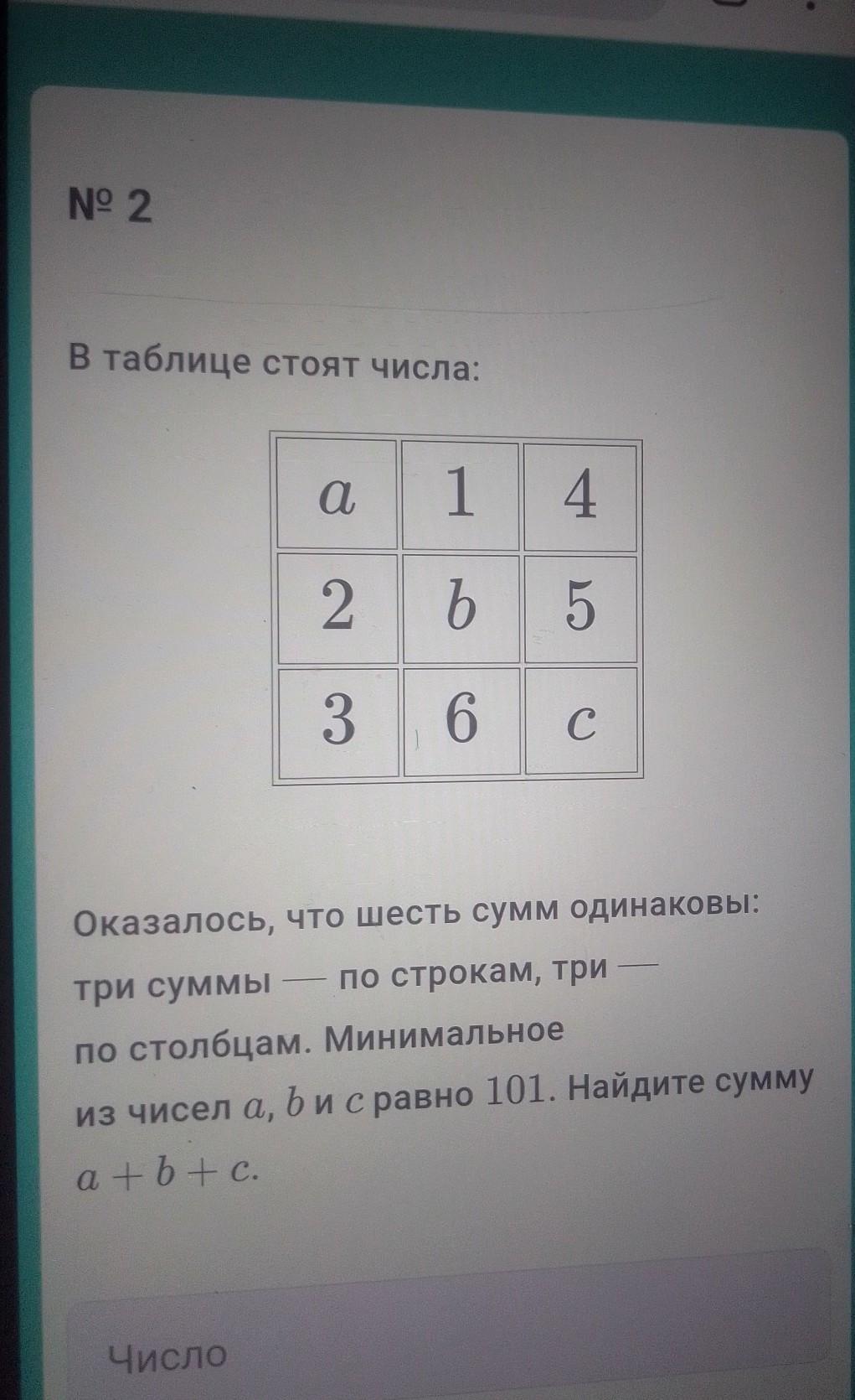 в квадрате 9 клеточек, значит цифры от 1 до 9, цифр 7,8 и 9 нет, значит, что A+B+C = 7+9+8 и в сумме они дают 23