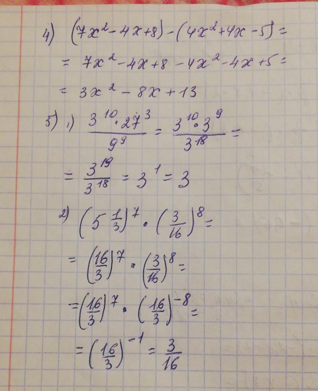 4) 7x^2-4x+8-4x^2-x+5=3x^2-5x+13