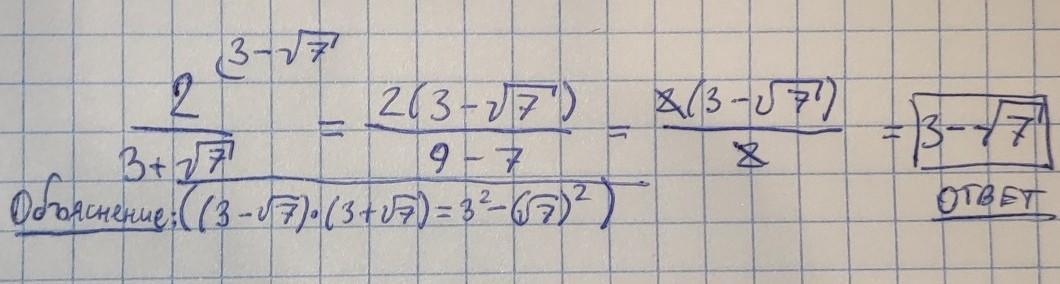 Домножаем дробь, чтобы добиться в знаменате действия формулы разности квадратов, дальше всё просто.