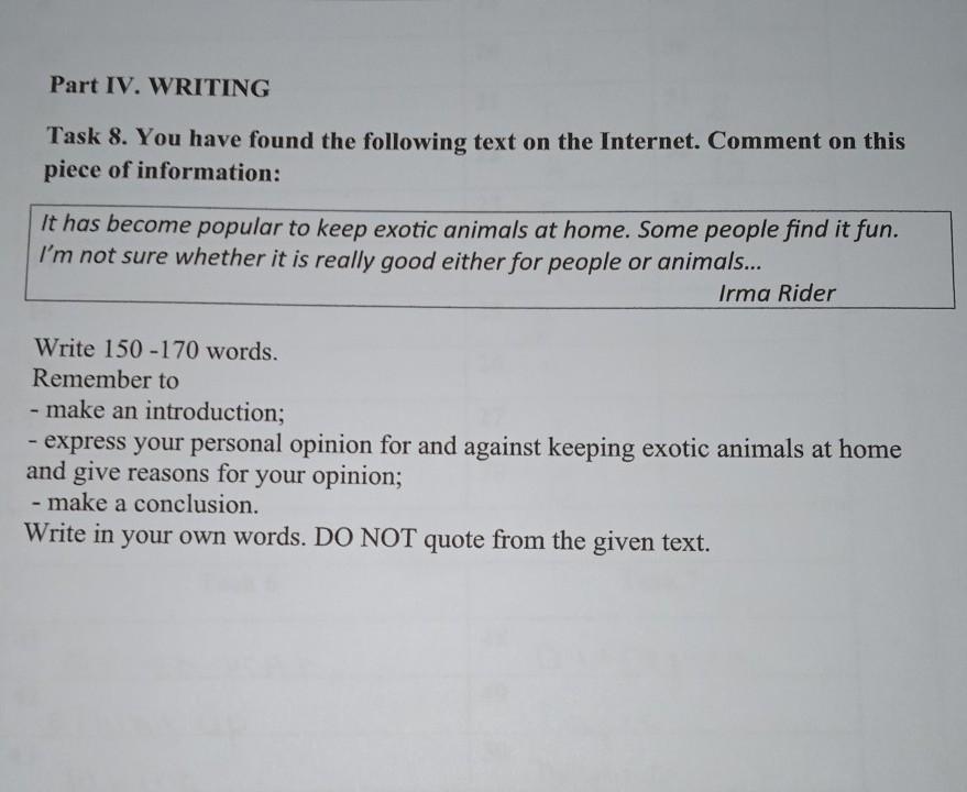 In conclusion, although there are some advantages to keeping an exotic animal at home, I do not think it should be done due to unexpected and unpredictable situations that may arise when such animals go out of control or have unknown diseases that their owners can be infected too.
