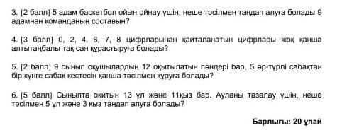 5 адам баскетбол ойынын ойнау үшін неше тәсілмен таңдап алуға болады 9 адамнан команданың составын