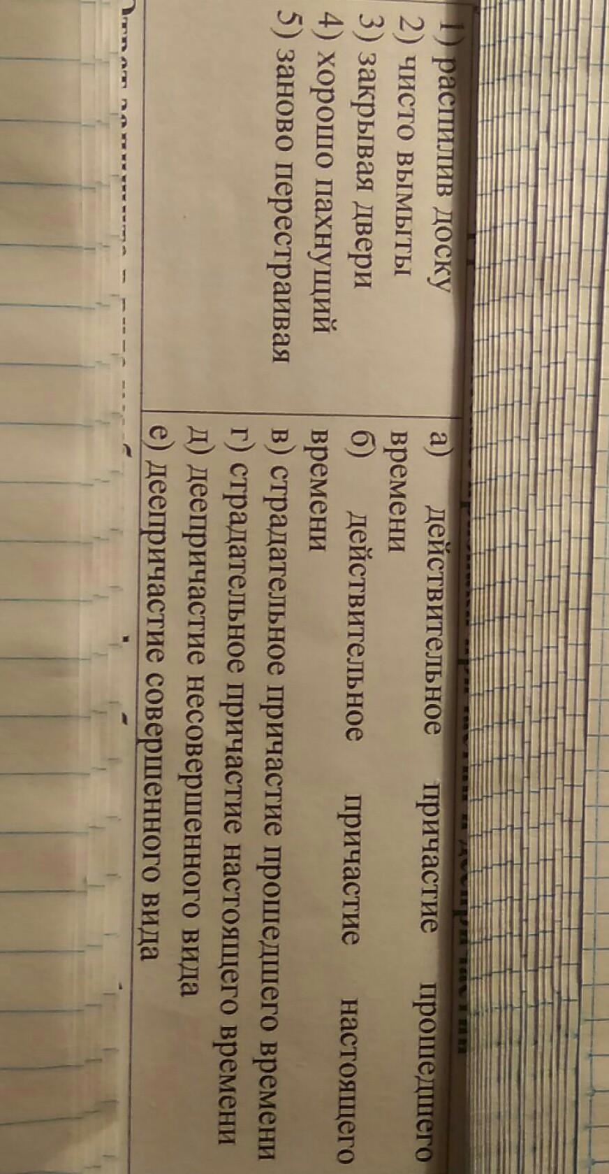 установите соответствие между столбцами определив указанные морфологические признаки причастий и деепричастий