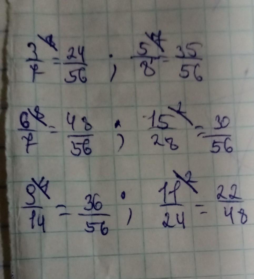Из дробей 3/7. 6/7. 9/14. 5/8. выберитете которые больше 19/56 и меньше 37/56 Ответ запишите в виде множества