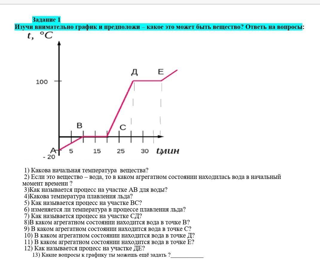 Задание 1 Изучи внимательно график и предположи – какое это может быть вещество? Ответь на вопросы: