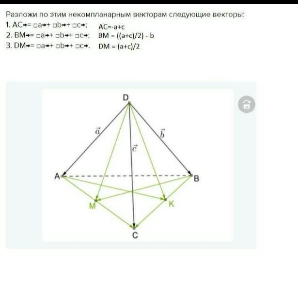 Разложи по этим некомпланарным векторам следующие векторы: