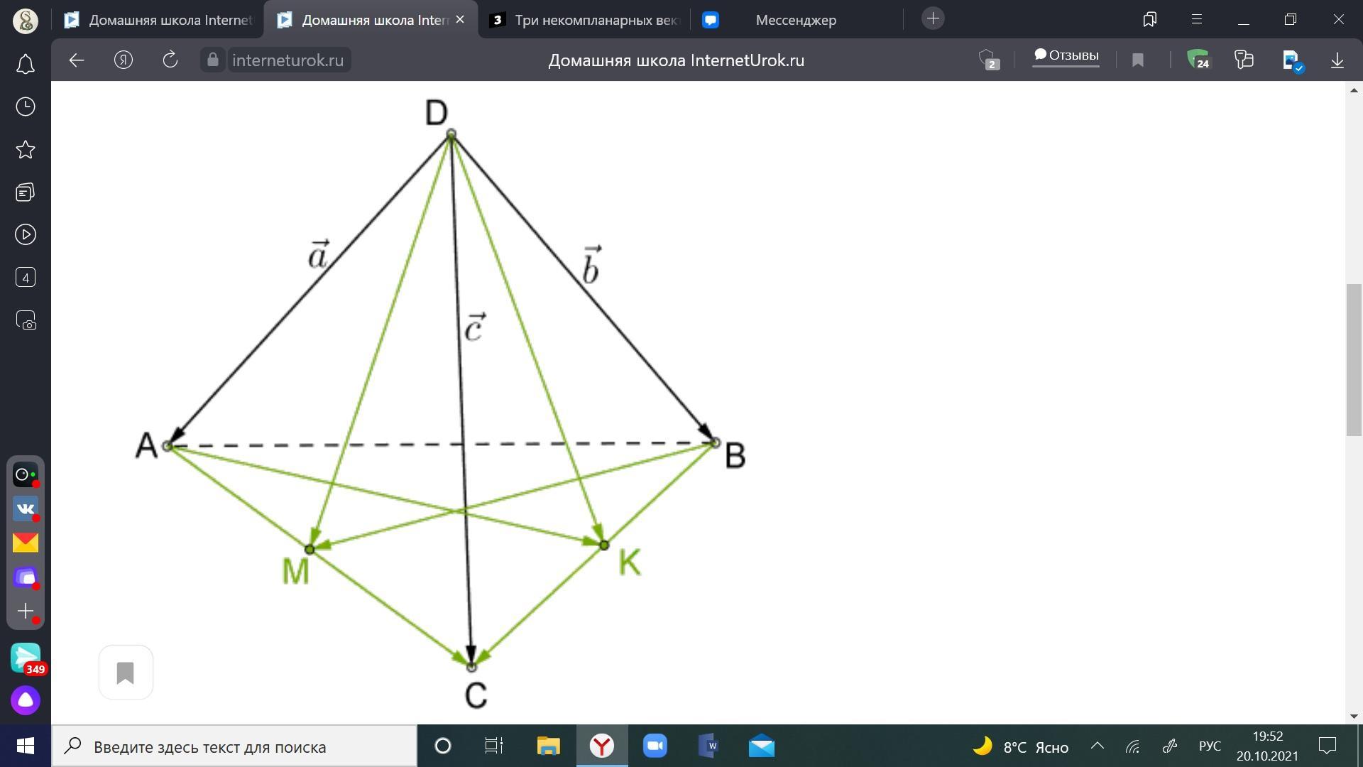 На рёбрах с общей вершиной правильного тетраэдра определены три некомпланарных вектора.