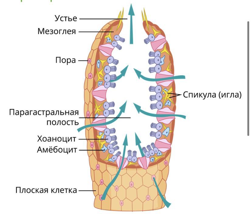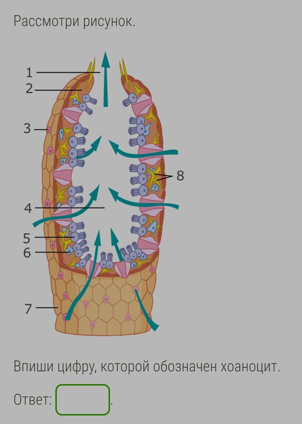 Рассмотри рисунок. Строение губки — копия.png Впиши цифру, которой обозначен хоаноцит