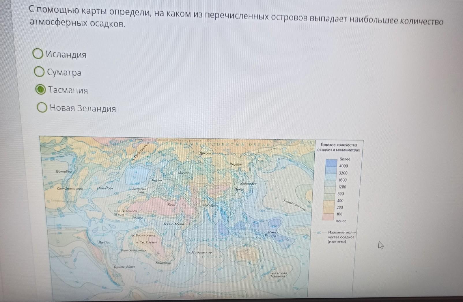 Скорее всего правильный ответ Тасмания я посмотрел их карту осадков и анализировал.