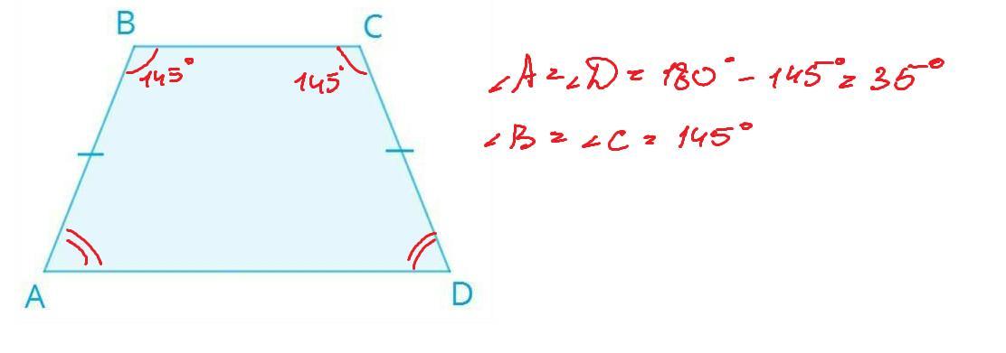 угол b = 145 гр., т.к. это равносторонняя трапеция