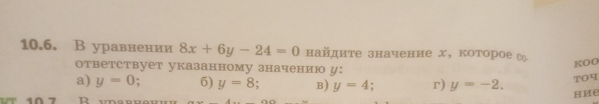А) Х равен 3 по тому что Y равен 0, а 8*3 = 24. Получается такое выражение: 8*3 + 6*0 - 24 = 24 - 24 = 0.