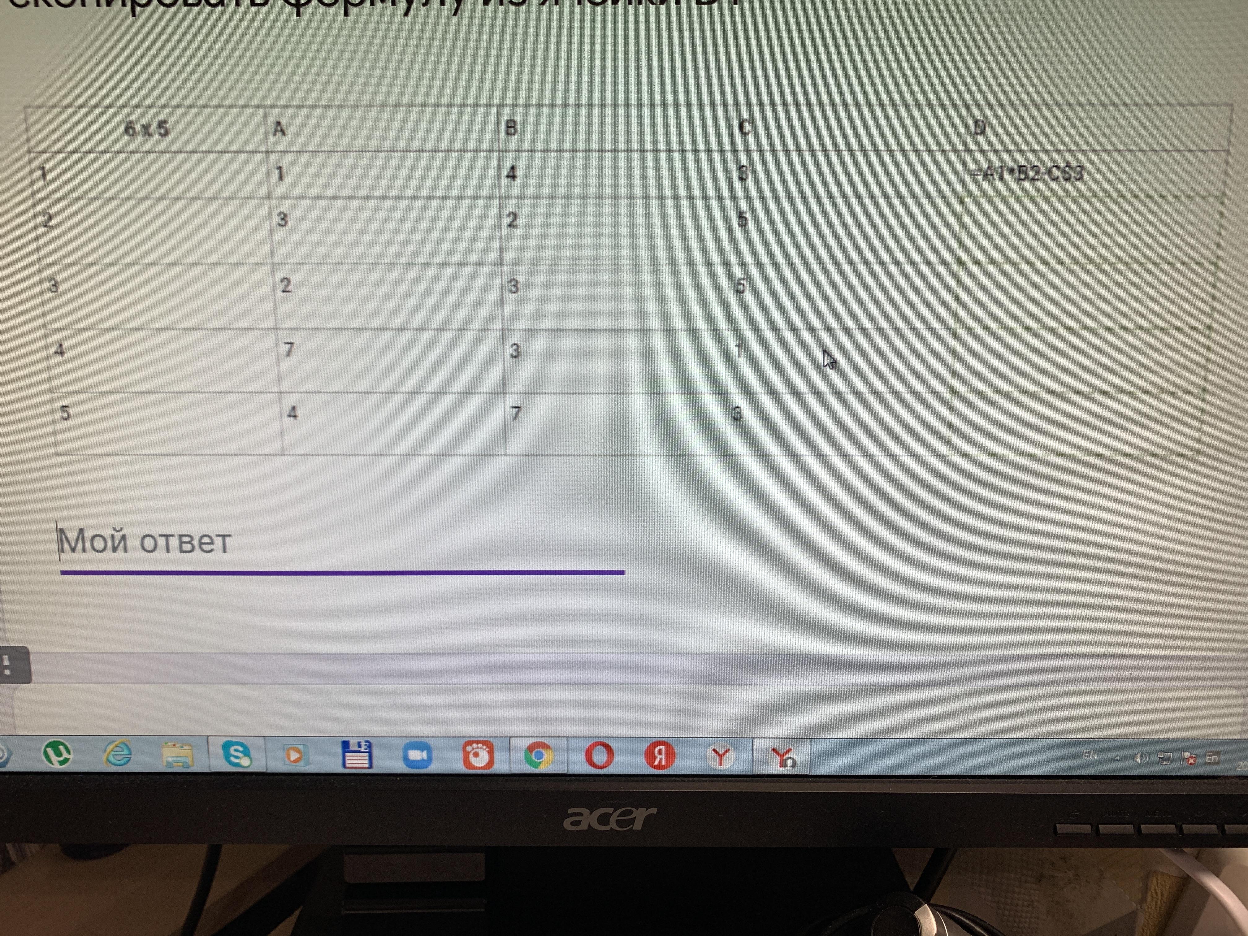 Какие значения появятся в ячейках D2:D5, если в них скопировать формулу из ячейки D1
