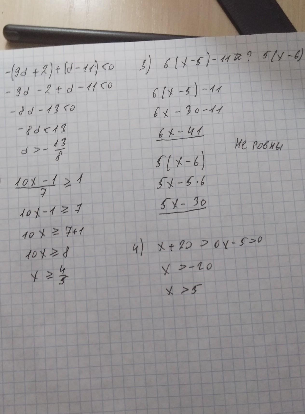 1.) Реши неравенство -(9d + 2) + (d — 11) < 0