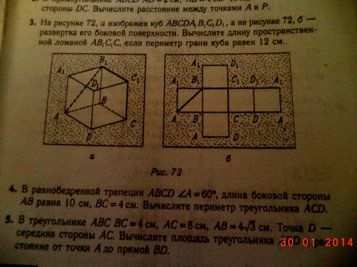 №3, АВ1=корень(АВ в к квадрате+ВВ1 вквадрате)=корень(144+144)=2*корень12, В1С1=СС1=12, линия АВ1С1С=АВ1+В1С1+СС1=12*корень2+12+12=12*(корень2+2)