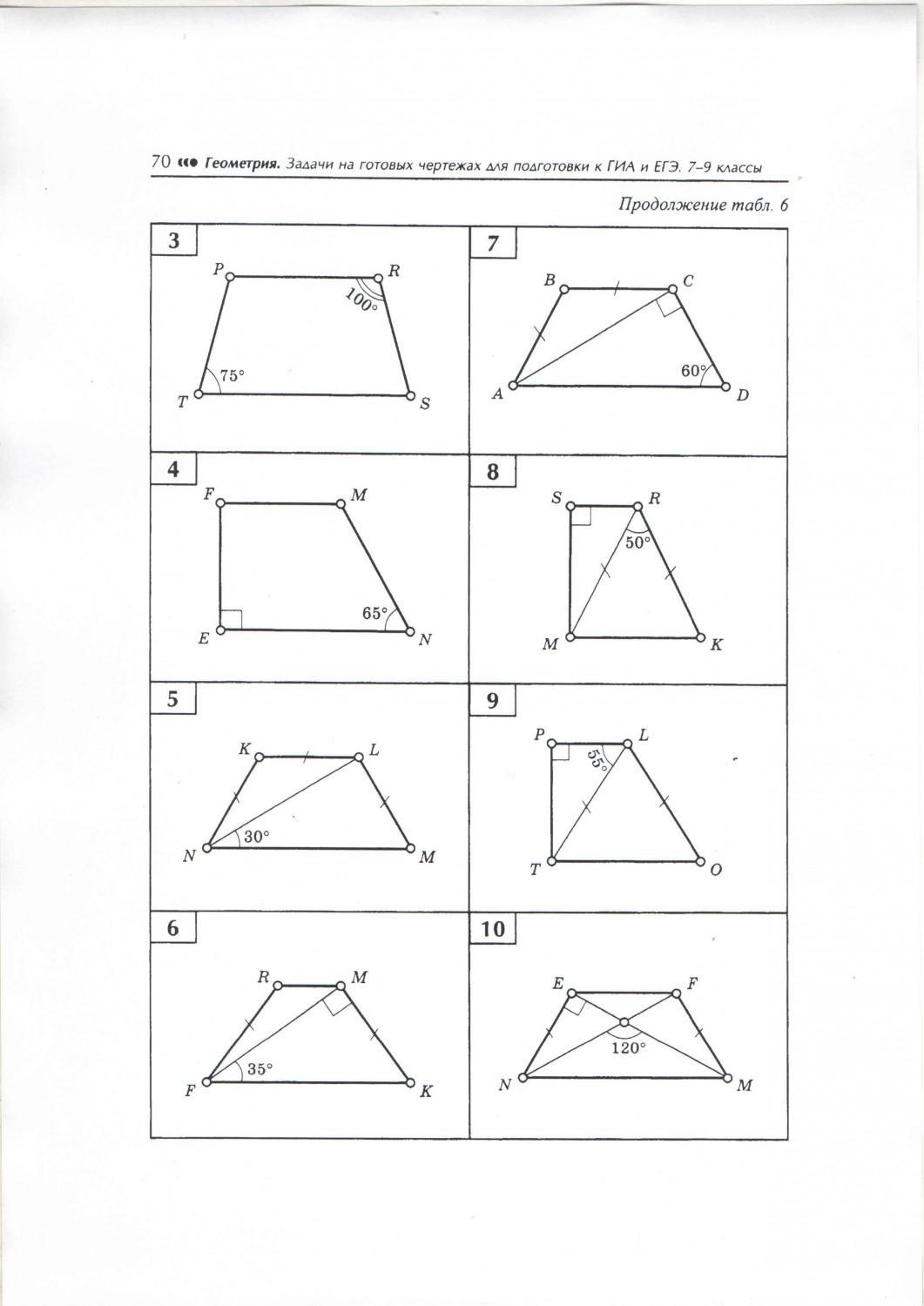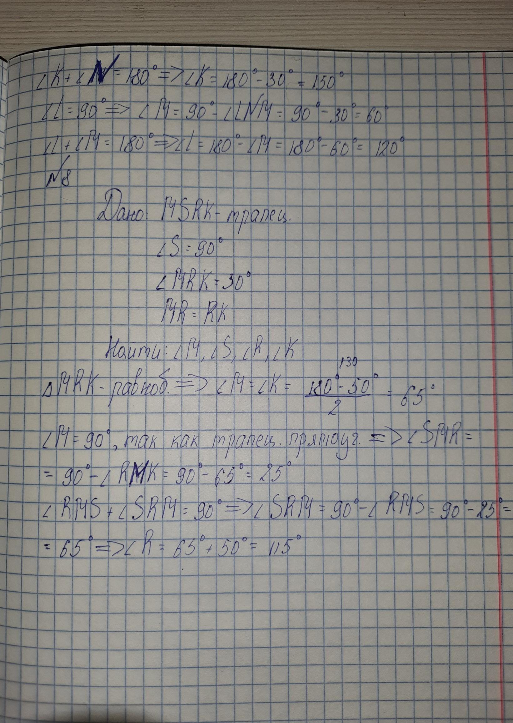Сделать рисунок к задачам №3, №4, №5 и №8 и записать их решения в тетрадь. В каждой задаче находим углы трапеции