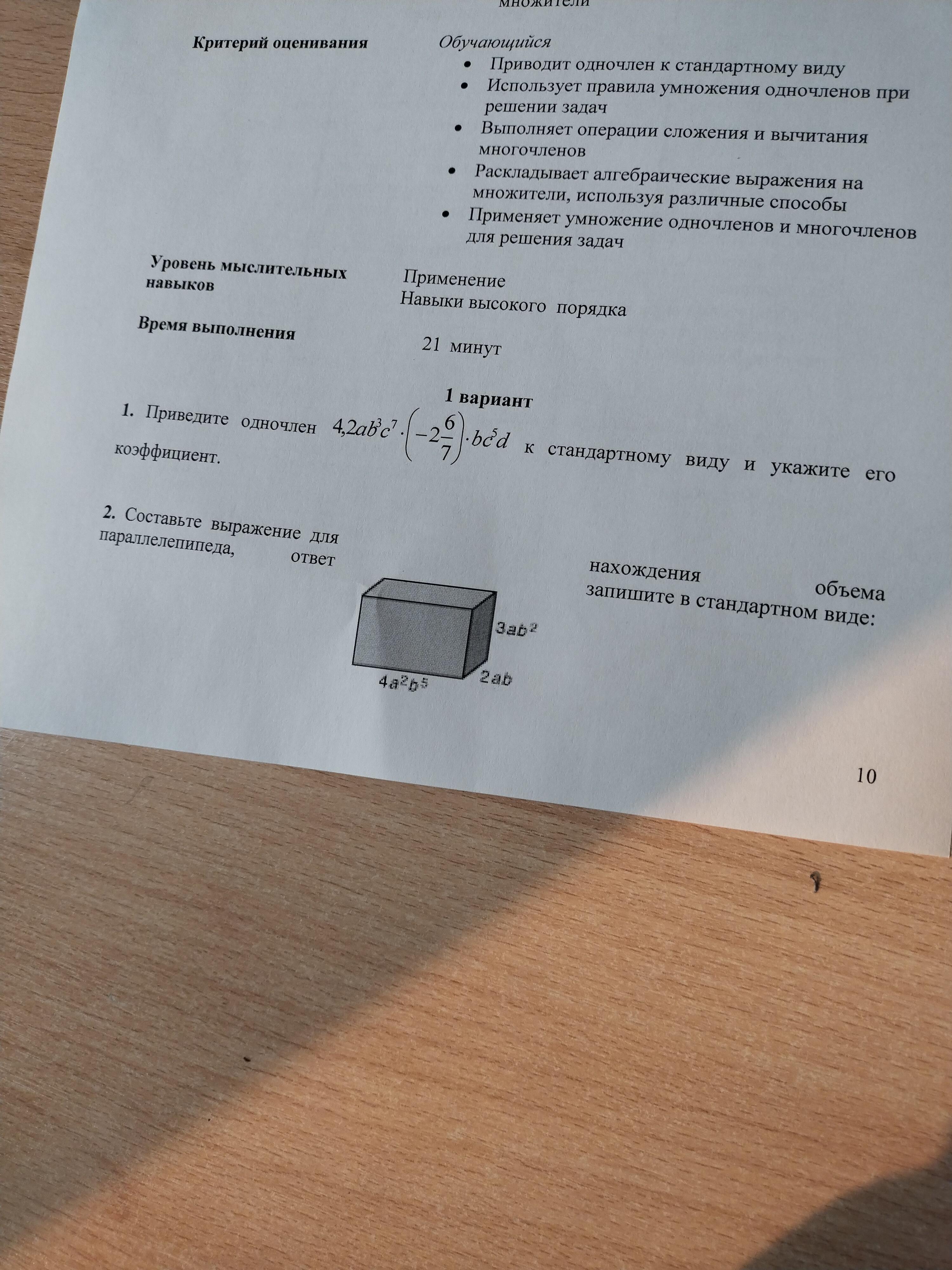 1 .4,2ab³c⁷ * ( - 2 6/7 )bc⁵d = -12ab⁴c¹²d ; коефіцієнт одночлена дорівнює - 12 .