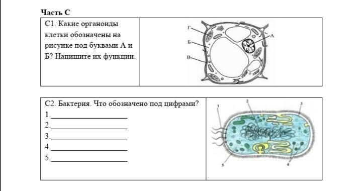 С1) Какие органоиды клетки обозначены на рисунке под буквами А и Б? Напишите их функции