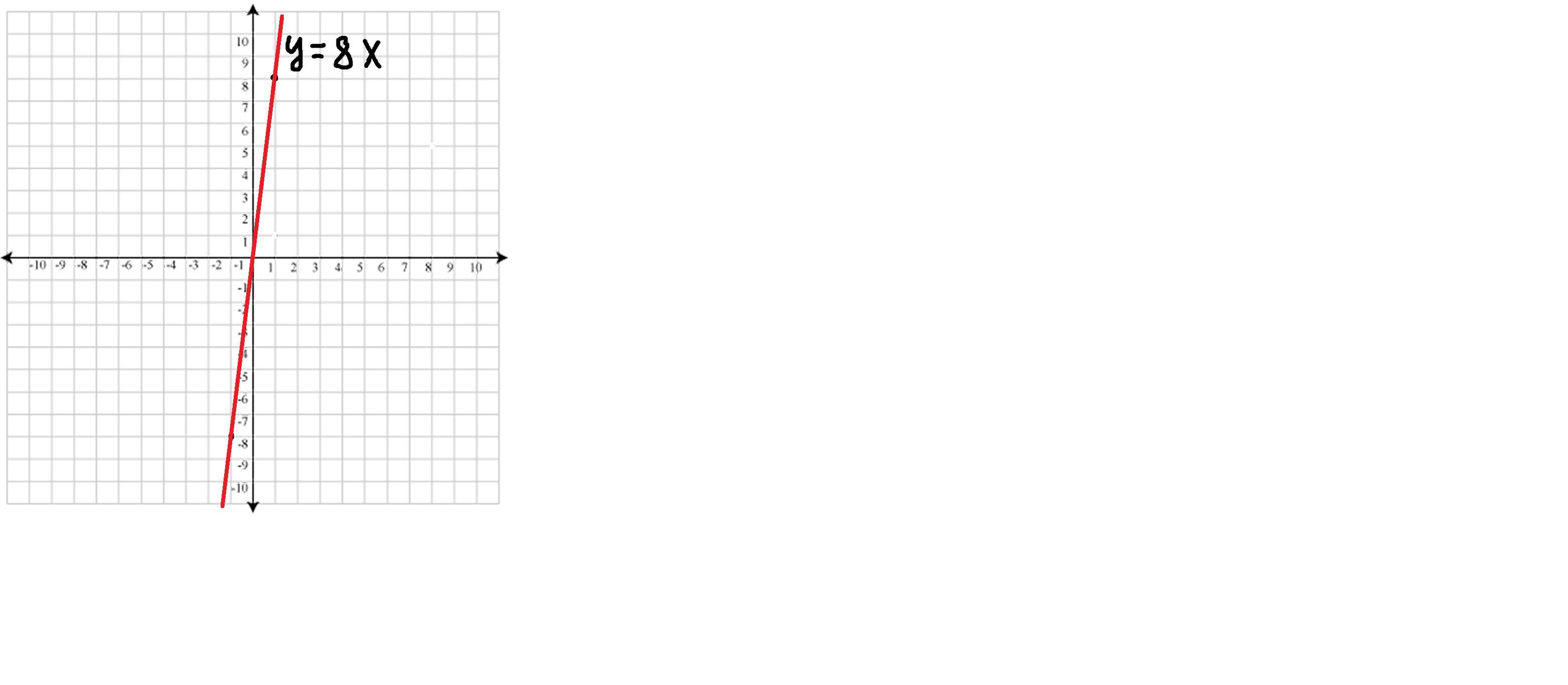 для построения графика у=8Х ,который яв-ся графиком линейной функции ,т.е прямой- необходимо найти значение в двух любых точках и эта прямая проходит через начало координат