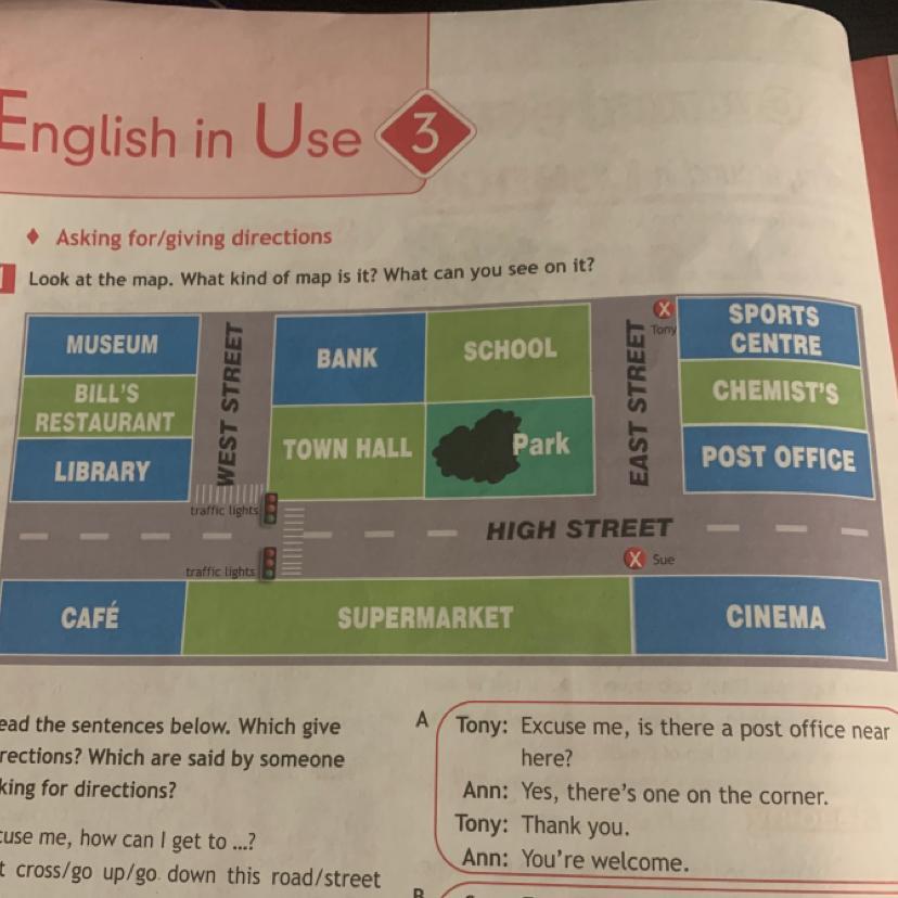 Напишите как пройти от кофе до школы, от почты до банка ( я не шарю в английском)