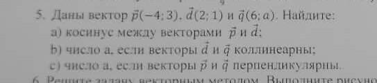 Помогите срочноо пожалуйста!!! 5. Даны вектор p(-4;3) d(2;1) q(9;a). Найдите: