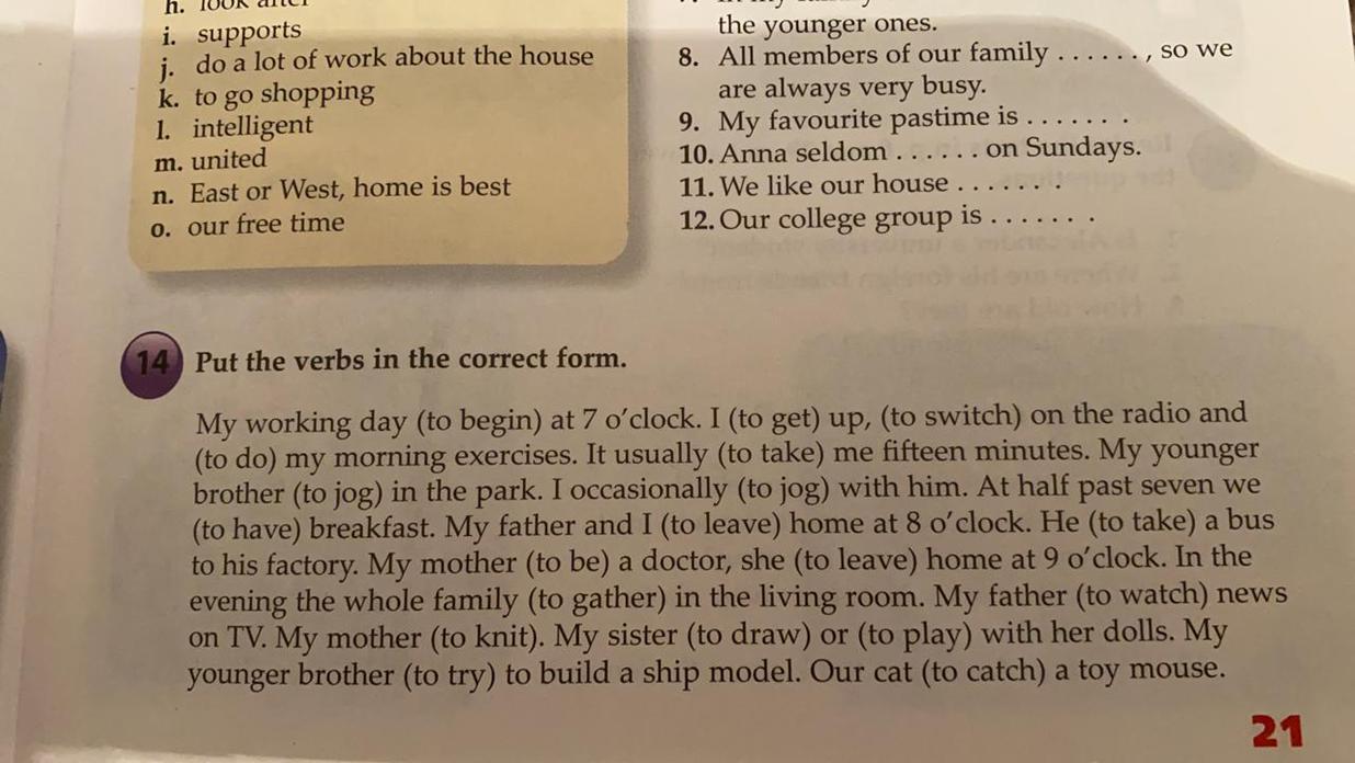 begins, get up, switch, do, takes, jogs, jog, have, leave, takes, is, leaves, gathers, watches, knits, draws, plays, tries, catches.