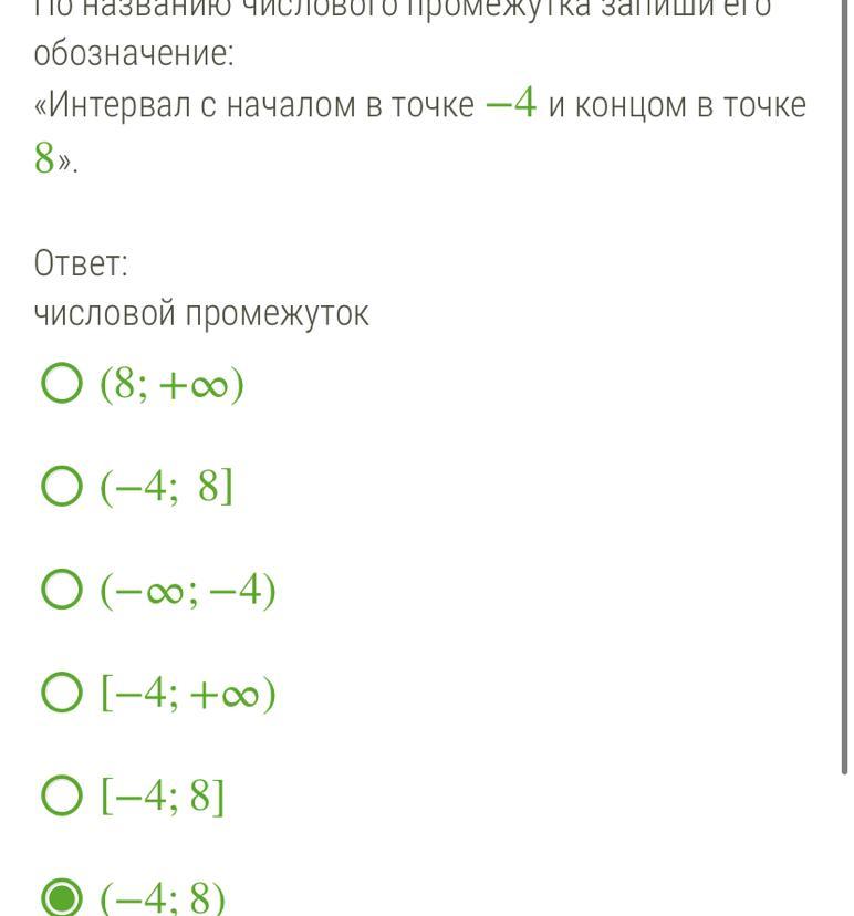( или ) - означает, что число не входит в промежуток, например (-4 говорит о том, что число -4 не входит в промежуток, а вот число -3 уже входит