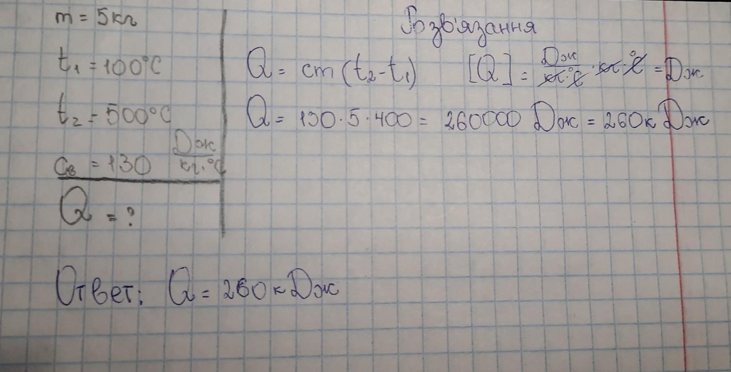 1. Какое количество теплоты необходимо сообщить свинцовой детали массой 5 кг, чтобы нагреть ее с 100С до 500С. Уд. теплоемкость свинца 130 Дж/(кг∙0С).