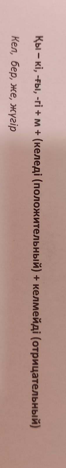 Қы — кі, -ғы, -гі +М+ (келеді (положительный) + келмейді (отрицательный) Кел, бер, же, жүгір помогите по пожалуйста надо вставить окончания