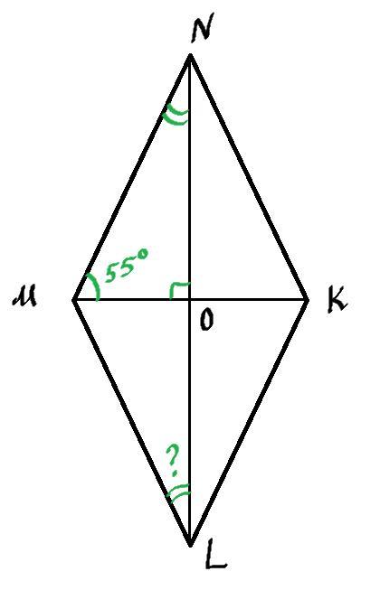 Дано: MNKL - ромб, ∠NMK = 55°.