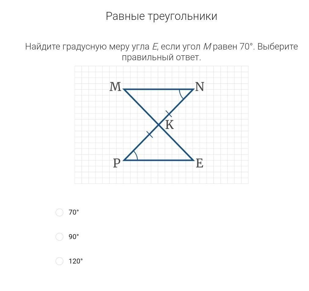 ∠NMK=∠KEP=70° - как накрест лежащие углы при MN//PE и секущей PN в равных треугольниках ΔKNM=ΔKPE - по двум углам и стороне между ними.