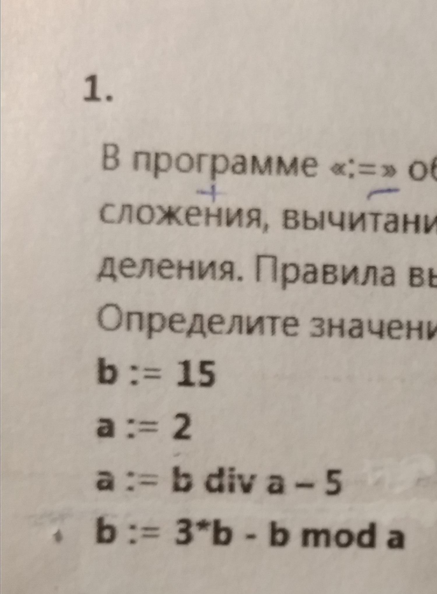 3) a:=b div a-5 --a равно b поделить 15 на 2 нацело(7) минус 5 (2)