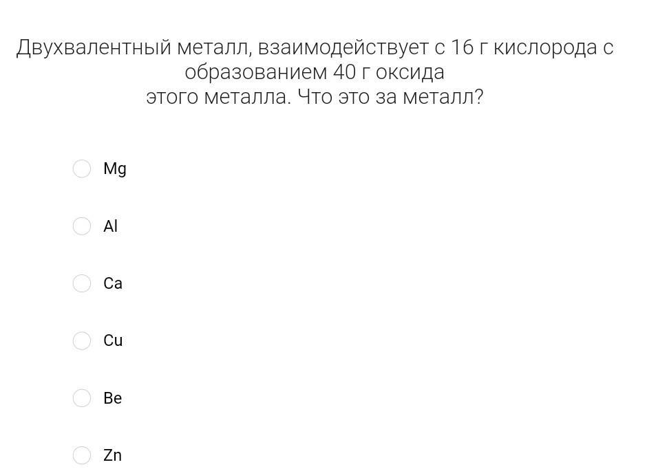5). По таблице Менделеева, металл, имеющий молярную массу 24 г/моль - это магний (Mg). Этот металл двухвалентный.