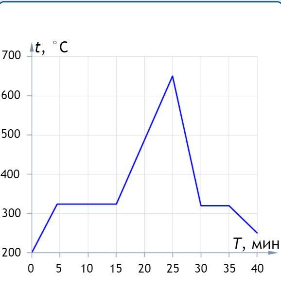 Рассмотрев график зависимости температуры некоторого металла при его нагревании и охлаждении, ответьте на вопросы. При необходимости используйте справочные материалы.(фото с градусами)
