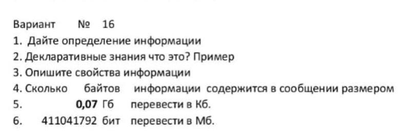 5) 0,07 Гб = 0,07 * 1024 * 1024 = 73400,32 Кбайт