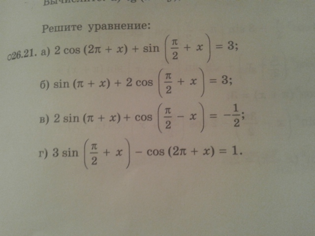 3sin(Пи/2+x)-cos(2Пи+x)= 1