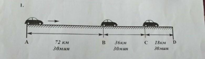 t1=t2=t3=0.5 ч s1=72 км s2=36 км s3=18 км