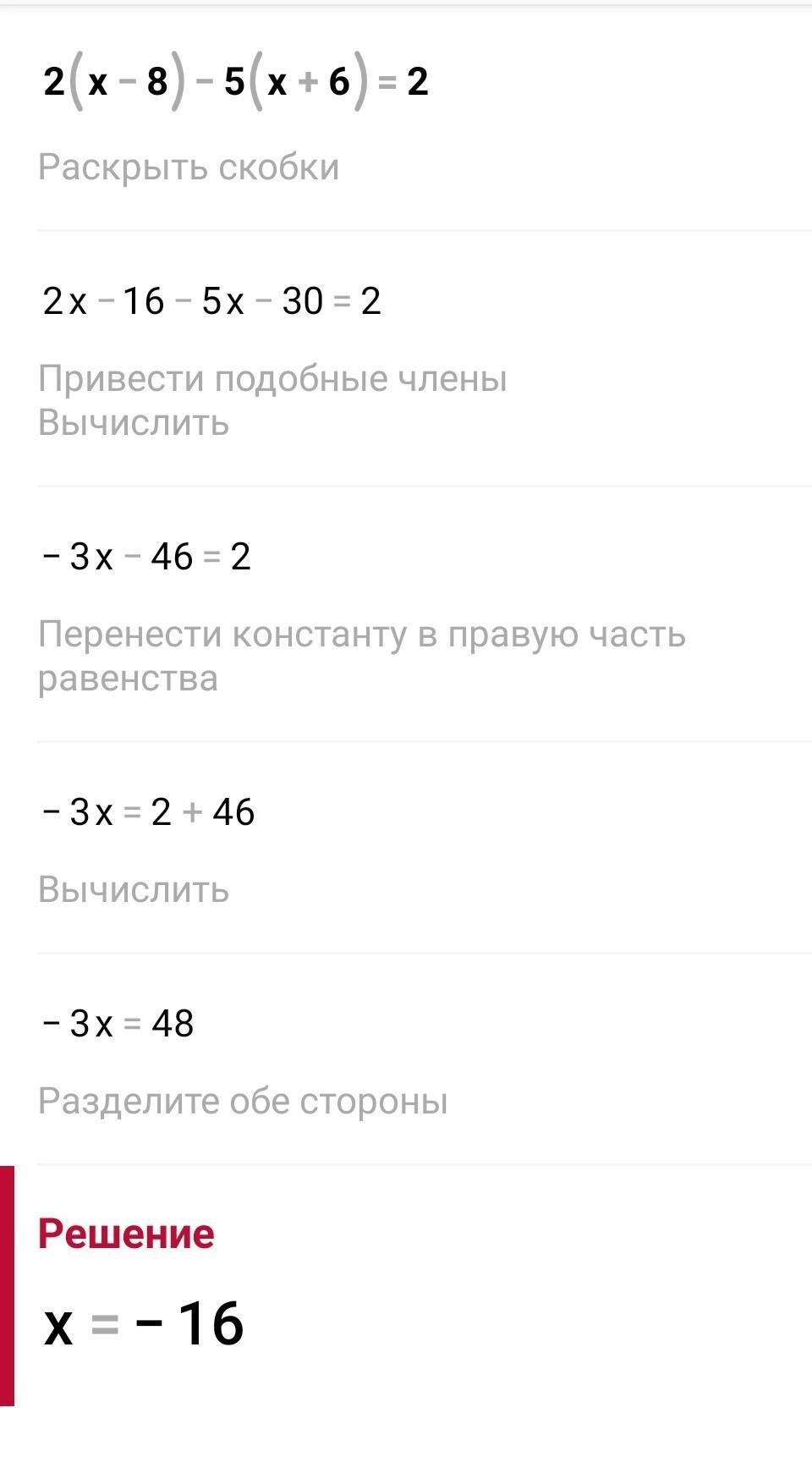 Помогите решить... 2(x-8)-5(x+6)=2. Голова совсем не варит
